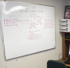 I tried to work without it, but honestly, I was a little bit handicapped. I tried using a notebook with a pen, but it wasn’t the same. My white board is an organizational tool that my brain uses as a leftover to my career days when I had two huge white boards going in my office at all times. It think better using one. I plot better. I write better.